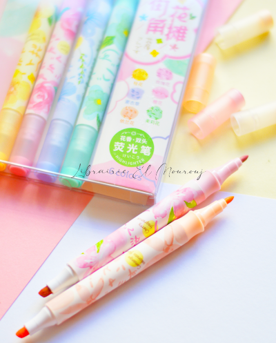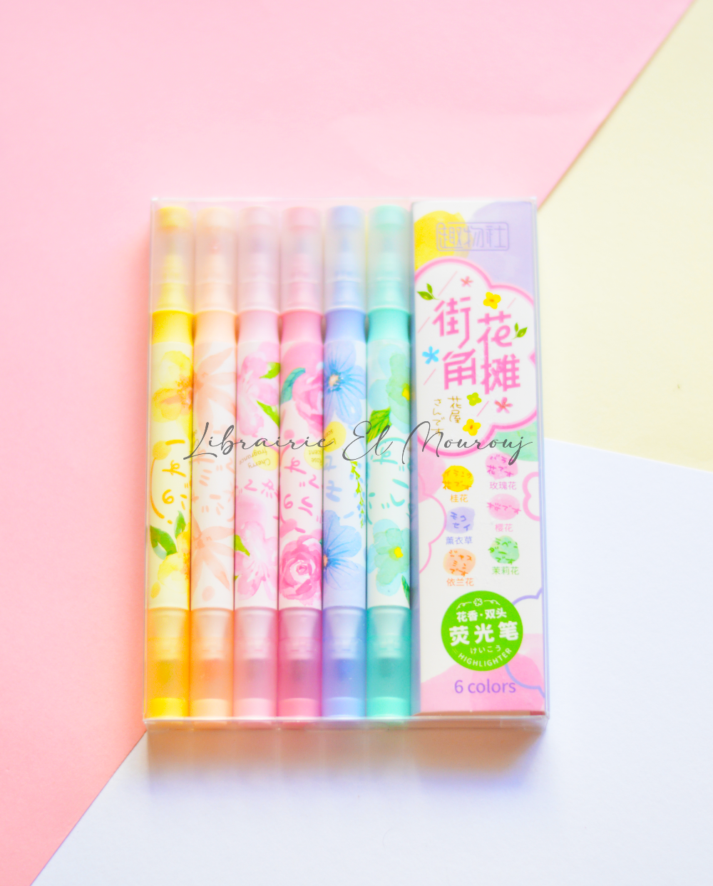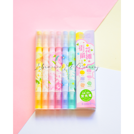 Feutre / Surligneurs à double pointe fleurie Pastel 6x