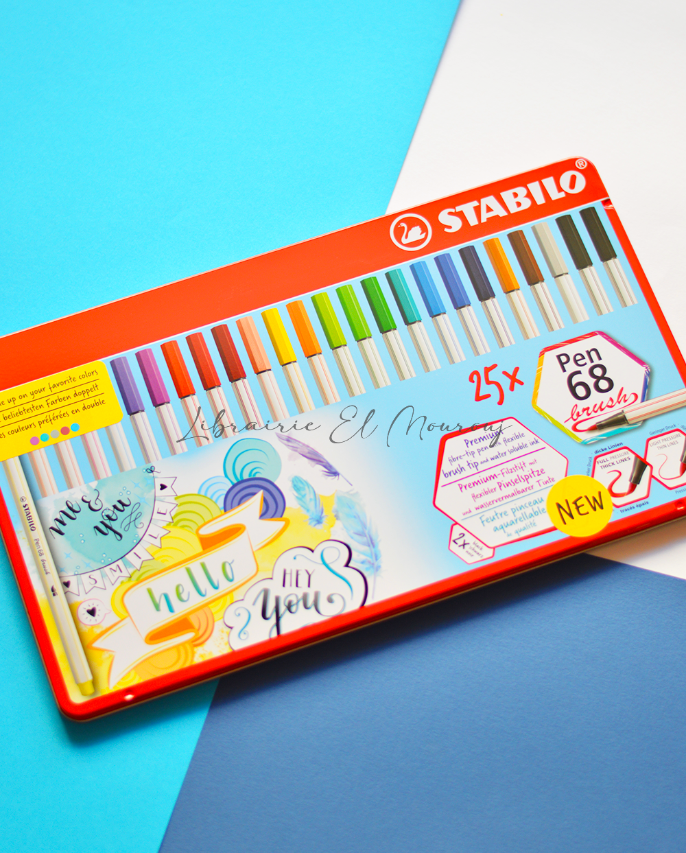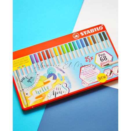 Boîte métal de 25 feutres Pen 68 Brush, pointe pinceau, couleurs assorties
