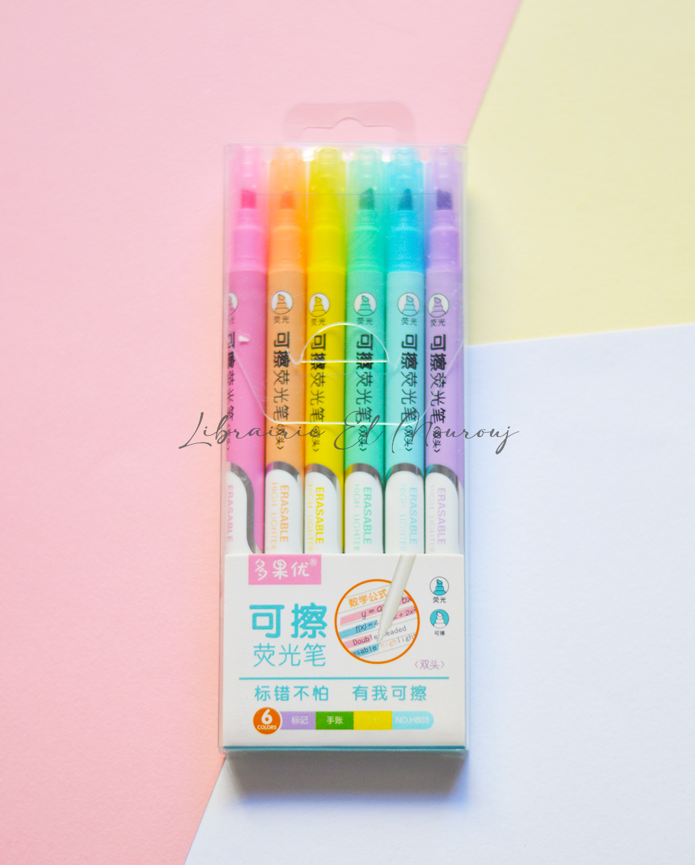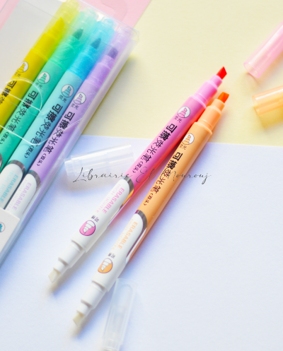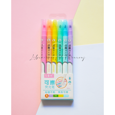 Stylo surligneurs & effaceur double pointe avec tampon couleur Pastel 6x