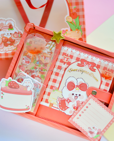 Box Kawaii Strawberry Bunny pour journaling Rouge