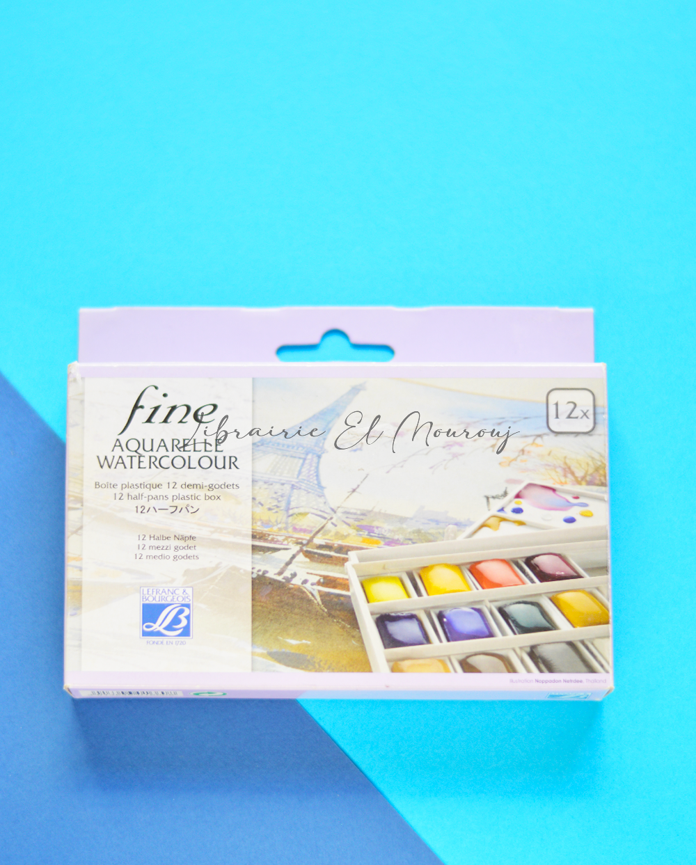 LEFRANC BOURGEOIS Fine Aquarelles Boite Plastique 12 demi-godets