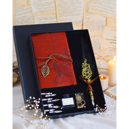 Set stylo plume de calligraphie antique couleur noir avec 8 pointes remplaçables, carnet vintage, support stylo & encrier.