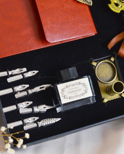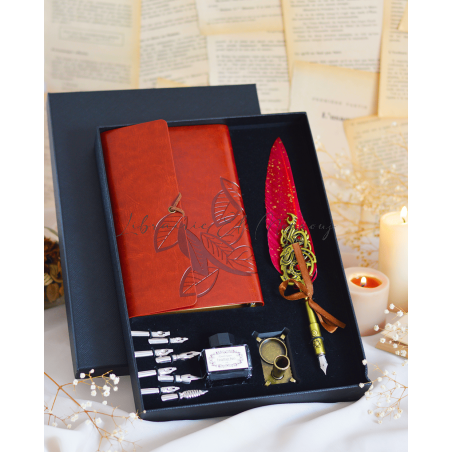 Set stylo plume de calligraphie antique couleur rouge avec 8 pointes remplaçables, carnet vintage, support stylo & encrier.