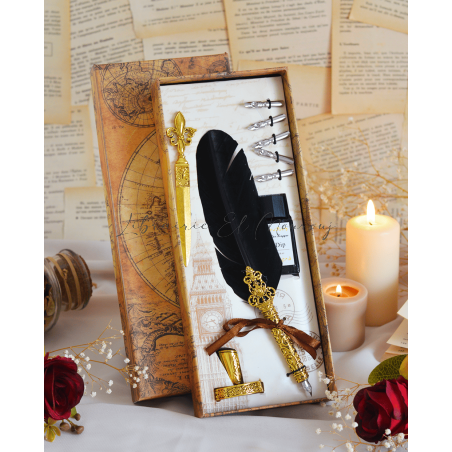 Set Stylo à Plume Noir, Plume Calligraphie et Encre avec Support stylo et 5 pointes remplaçables,Coffret Cadeau.