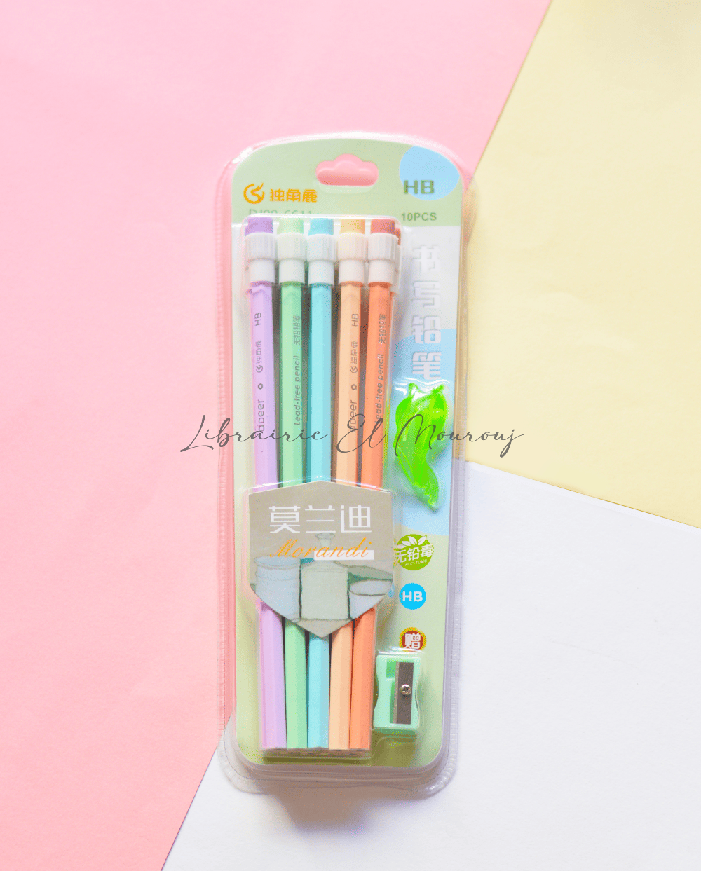 Crayon noir HB 10pcs avec gomme & 1 taille-crayon