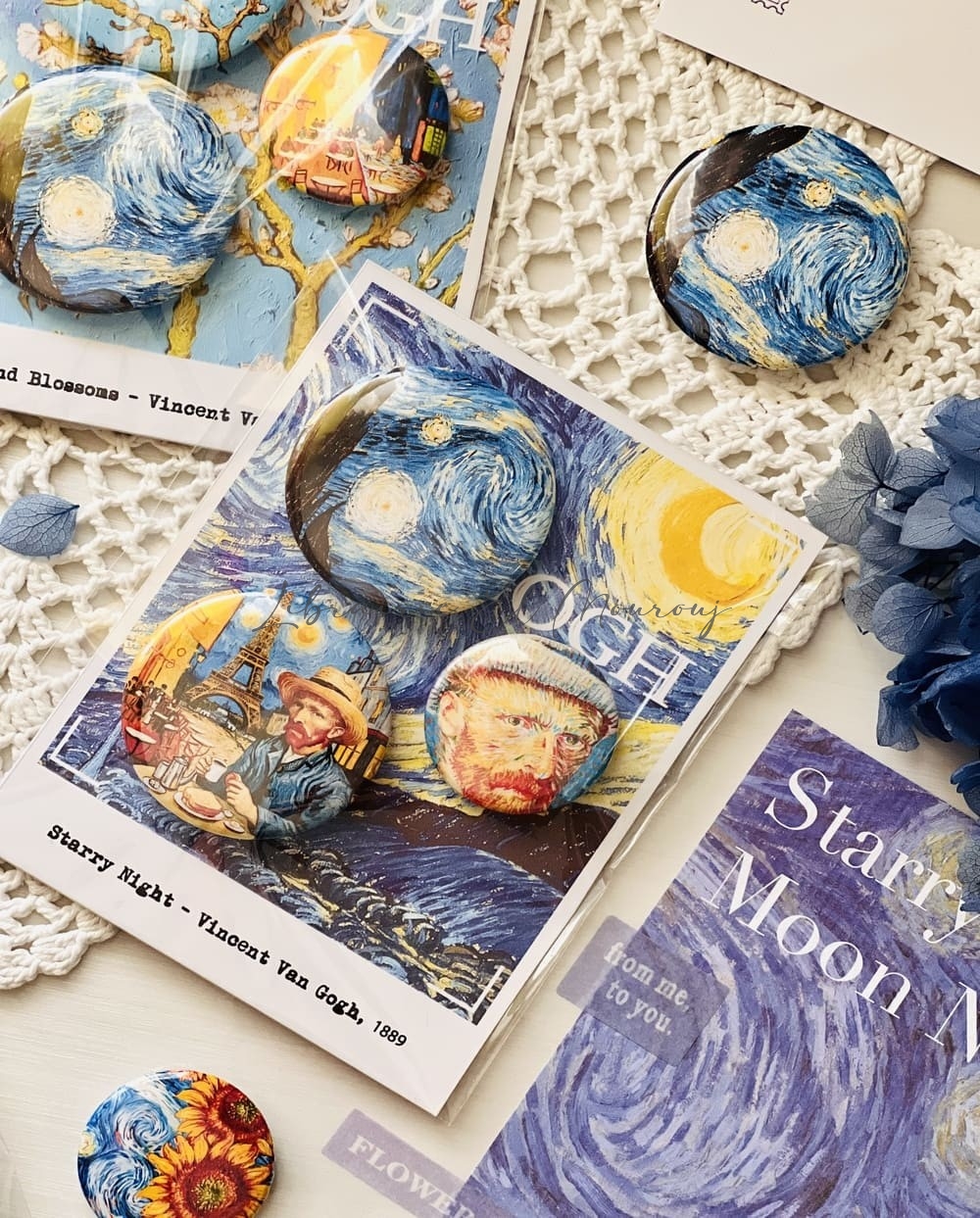 3 Pins Van Gogh + Carte Postale