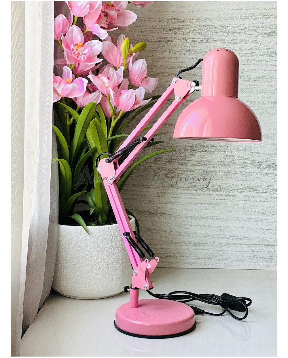 La lampe à bras pivotant avec trois joints rotatifs (à la base, au bras et à la tête de la lampe) permet de faire la mise au point de la lumière dans presque toutes les directions.