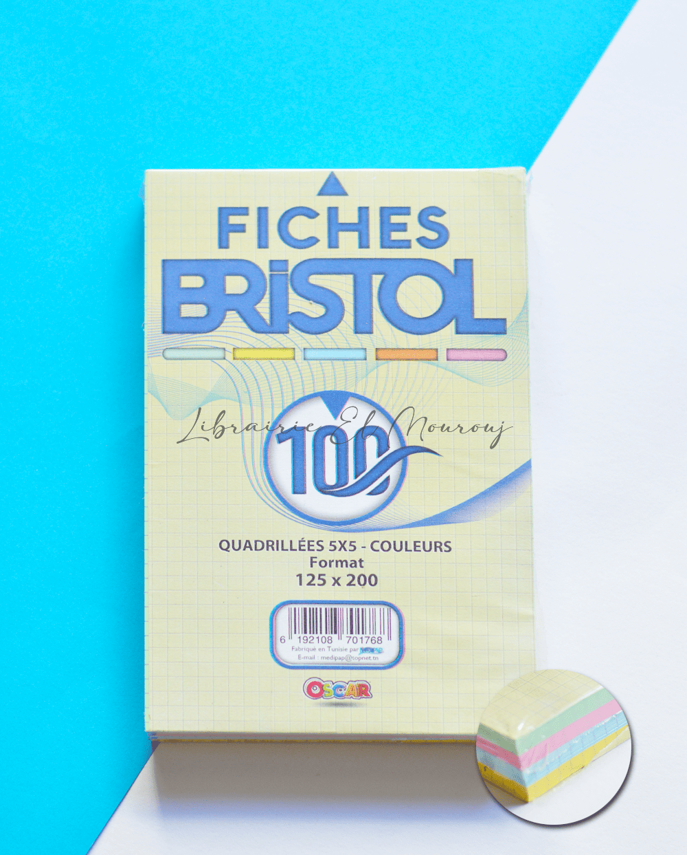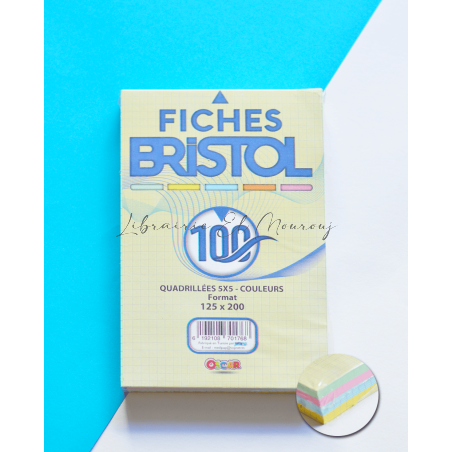 Fiches Bristol 100 quadrillées 5x5 - Couleurs - Format A5