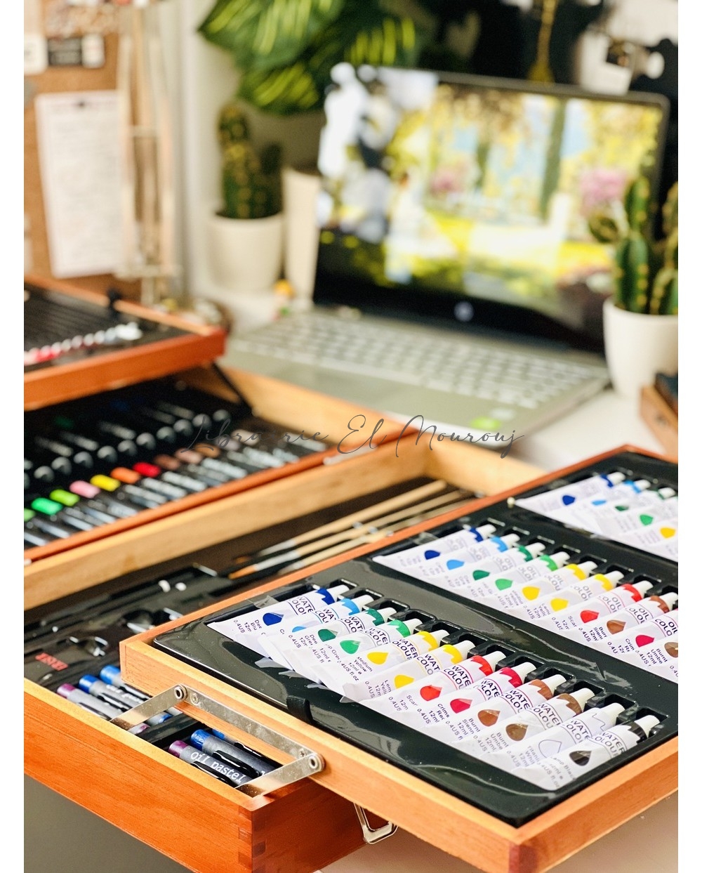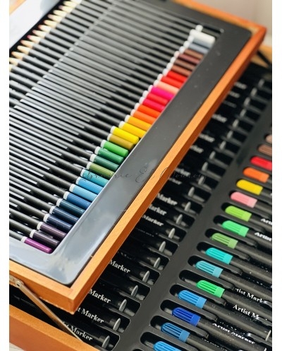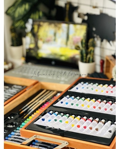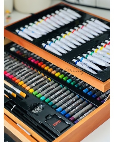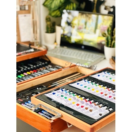 Valise Artiste Complète en Bois - Kit de Peinture Professionnel 174 pièces