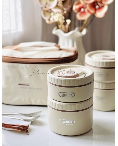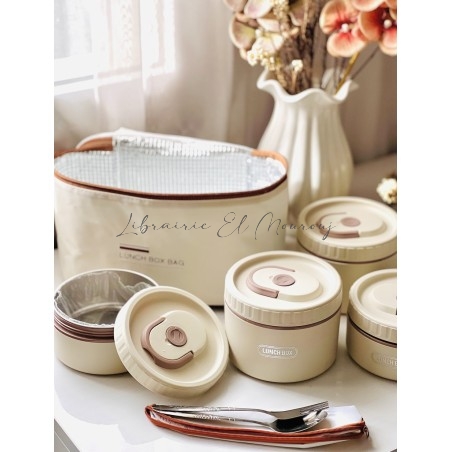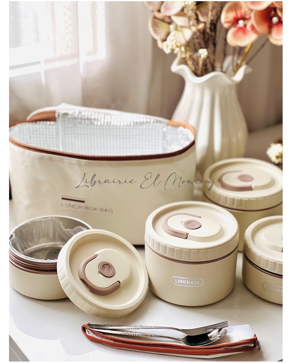 Quatre Boite , avec une cuillère et une fourchette en acier , panier isothermique.