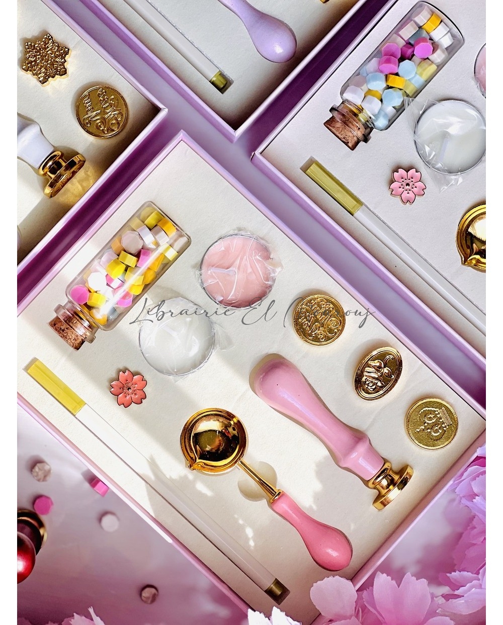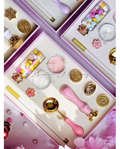 Chaque ensemble, soigneusement présenté dans une boîte pastel inspirée des fleurs SAKURA , contient tout le nécessaire pour sceller vos lettres, invitations ou journaux d’un sceau empreint de charme et de poésie.