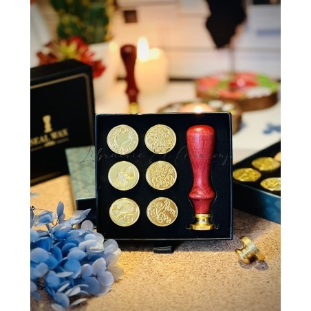 Tampon Cire Vintage Noir - Manche en Bois, Tampons de Cire à Cacheter - Avec 7 Têtes de Tampon.