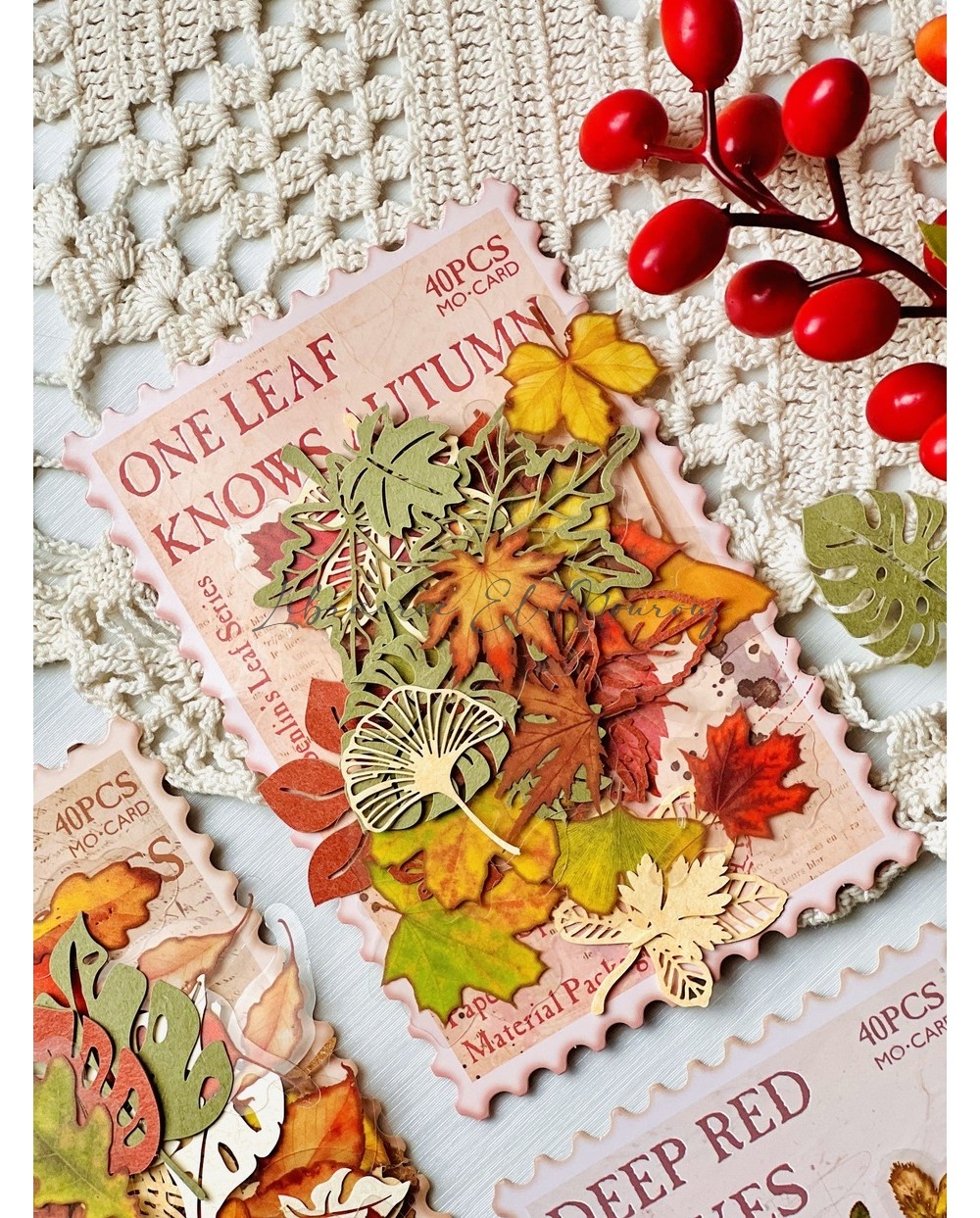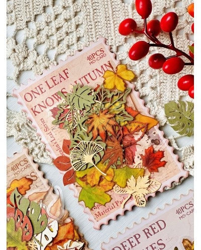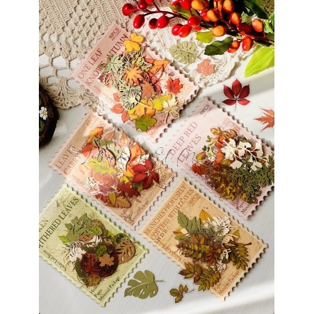 Adhesive Stickers Two Materials (Paper and PVC), Leaf Motifs, Paper Cutouts for Scrapbooking, Junk Journal, Card Making, Mixed Media, 6 Pieces, Assorted