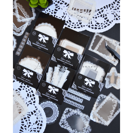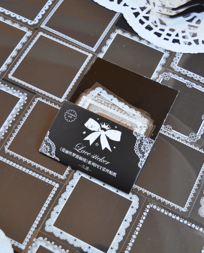 Il s'agit d'un ensemble d'autocollants en dentelle PET, peut être coller sur tous les supports , téléphone , ordinateur , papier .