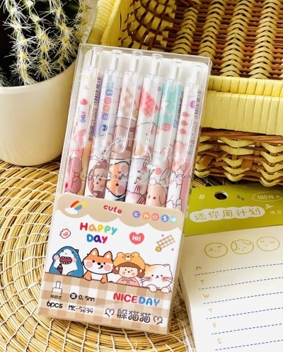 Pochette de 6 stylos gel noir - Nice Day