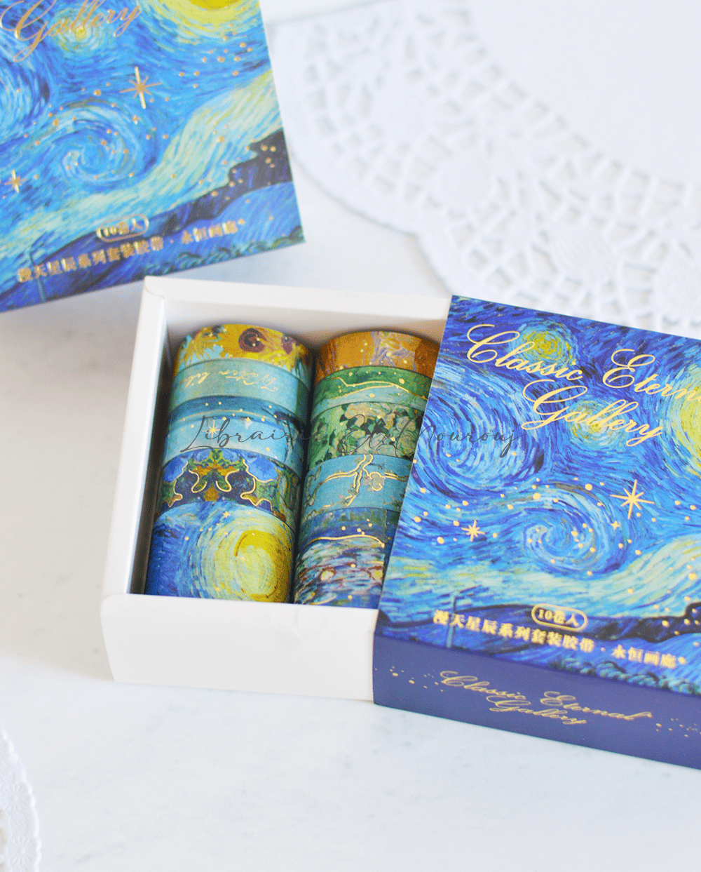 Ensemble de rubans adhésifs Washi pour scrapbooking, Van Gogh, ciel étoilé, planète, feuille d'or, ruban de masquage décoratif, boîte de 10 pièces .