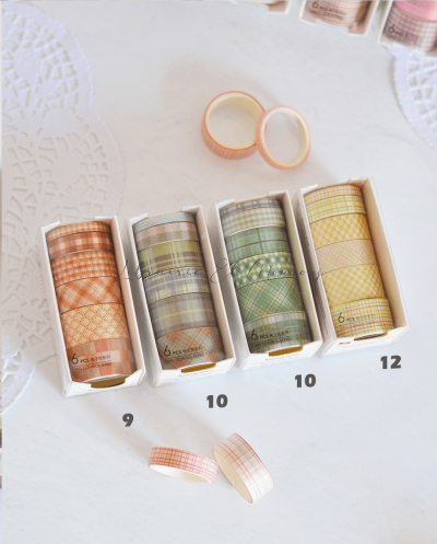 Rubans adhésifs décoratifs pour Scrapbooking, contrôle de grille simple, papier bricolage, autocollants japonais, 2m, 1 ensemble, 1lot de 6