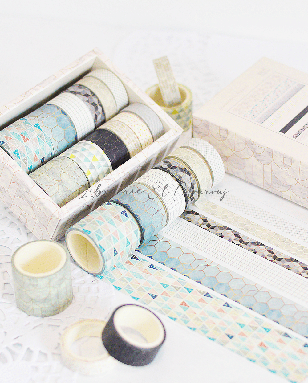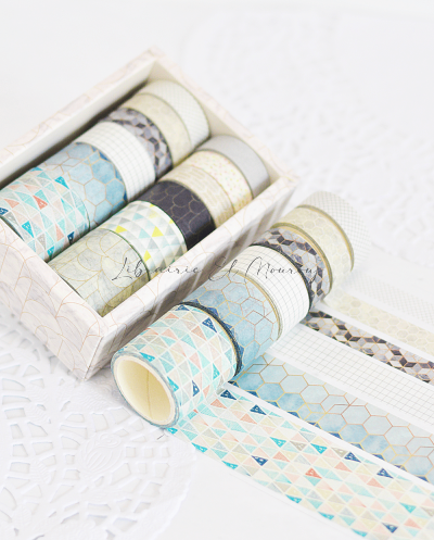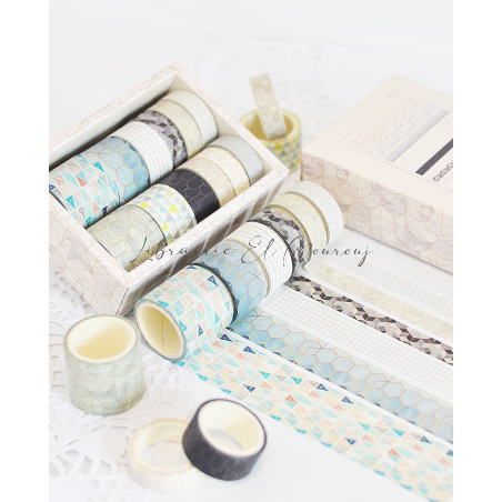 Coffret Washi Tape Décoratif Japonais Gris *12