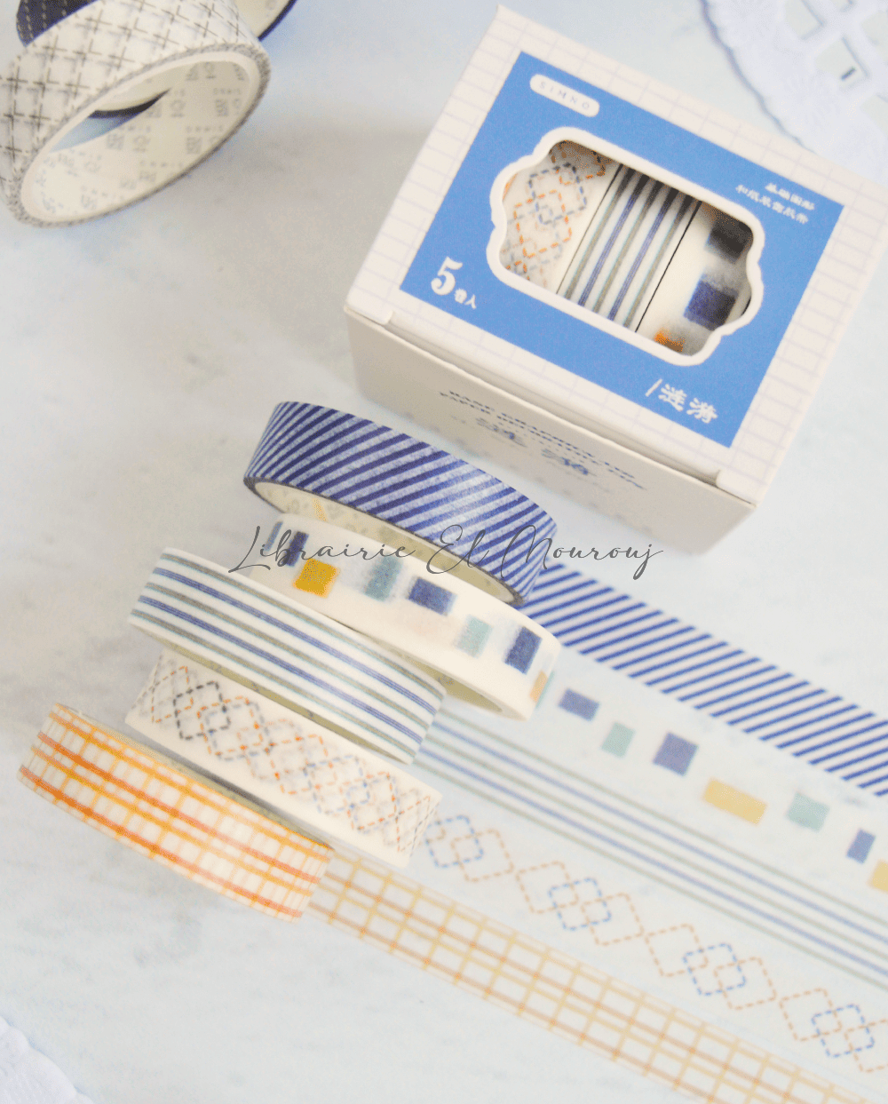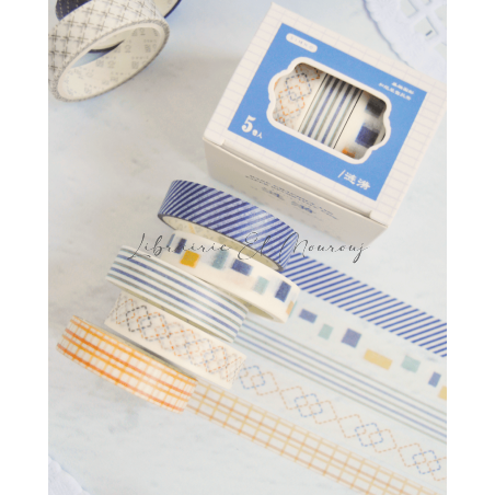 Washi tape bleu 5 en 1