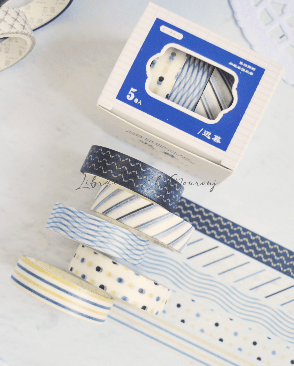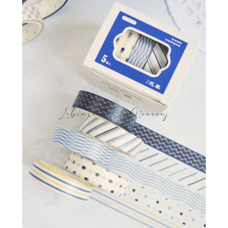 Washi tape Bleu Pétrole 5 en 1